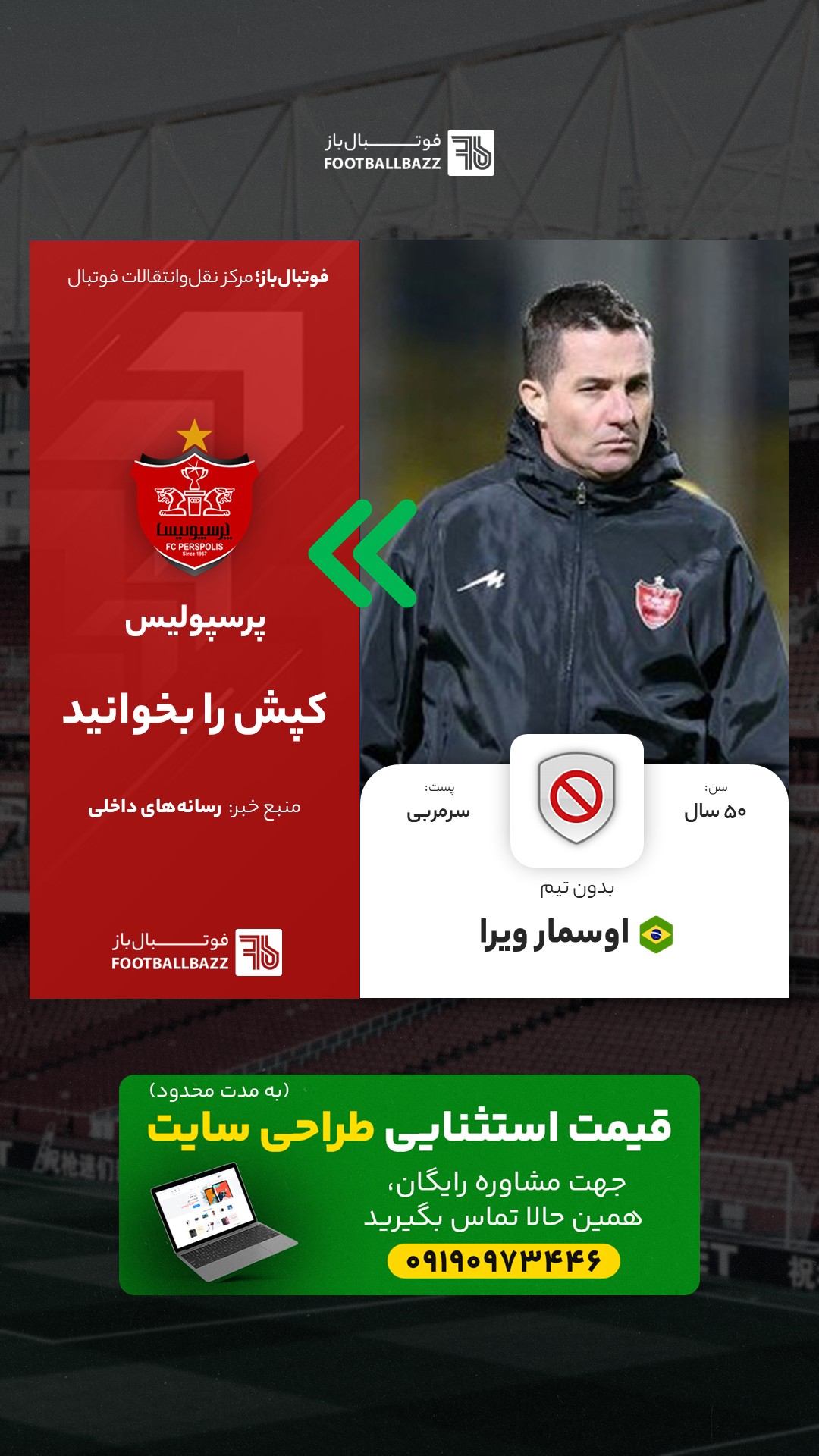 اوسمار در آستانه بازگشت: تا تعیین تکلیف وضعیت نیمکت پرسپولیس، وحید هاشمیان در بازی مقابل ذوبآهن همچنان سرمربی پرسپولیس خواهد بود. اوسمار ویرا پیشنهاد پرسپولیس را پذیرفته، اما مذاکرات بر سر جزئیات قرارداد ادامه دارد و احتمالاً او پس از این بازی رسماً هدایت تیم را بر عهده خواهد گرفت.