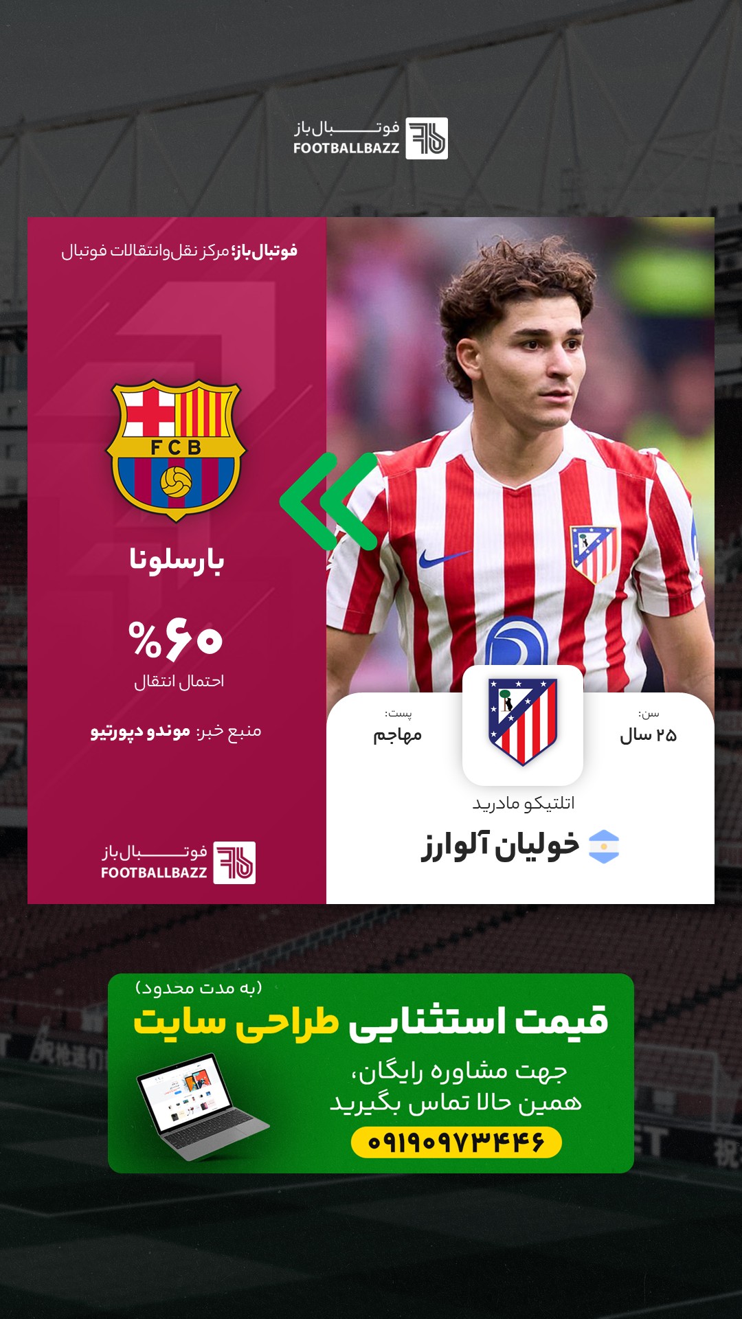 بارسلونا و برنامه خرید آلوارز با خروج لواندوفسکی: مدیریت بارسلونا معتقد است در صورت جدایی رابرت لواندوفسکی که با ۴۰ میلیون یورو آزاد می‌شود، توان خرید یک مهاجم سطح بالا را خواهد داشت. خولیان آلوارز، مهاجم آرژانتینی، گزینه مورد علاقه باشگاه است و او نیز به پوشیدن پیراهن بارسا علاقه دارد.