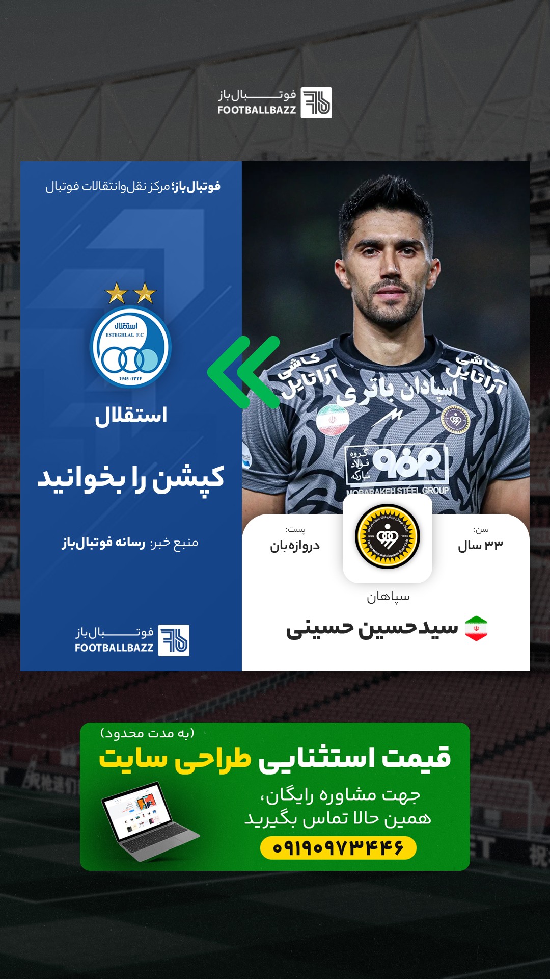 احتمال بازگشت حسینی به استقلال در نیم‌فصل کم‌رنگ شد: با وجود نارضایتی سید حسین حسینی از نیمکت‌نشینی در سپاهان و شایعات بازگشت به استقلال، این انتقال در زمستان رخ نخواهد داد؛ چراکه بر خلاف اخبار دیروز، شنیده شده که آنتونیو آدان، گلر اسپانیایی، تا انتهای فصل در فهرست ریکاردو ساپینتو باقی خواهد ماند.