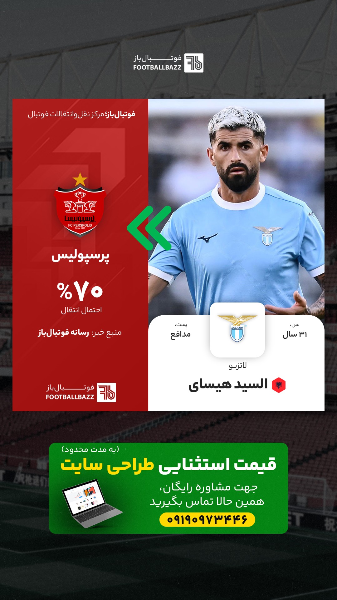 پرسپولیس در کمین مدافع آلبانیایی لاتزیو: رسانههای ایتالیایی مدعی شدند باشگاه پرسپولیس قصد دارد از شرایط خاص قرارداد السید هیسای، مدافع راست آلبانیایی لاتزیو، استفاده کرده و او را به خدمت بگیرد. هیسای از ژانویه ۲۰۲۶ میتواند با تیمهای دیگر مذاکره کند و پرسپولیس با پیشنهاد مالی جذاب، به دنبال نهایی کردن این انتقال است.