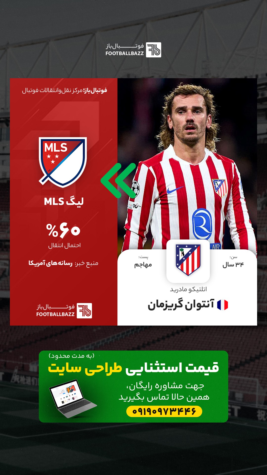 گریزمان و پیشنهادهای MLS: دو باشگاه از لیگ MLS آمریکا مذاکرات خود را برای جذب آنتوان گریزمان، مهاجم ۳۴ ساله اتلتیکو مادرید، آغاز کردهاند. با نزدیک شدن به پایان قرارداد، به نظر میرسد گریزمان نگاهی به این پیشنهادات خواهد داشت.