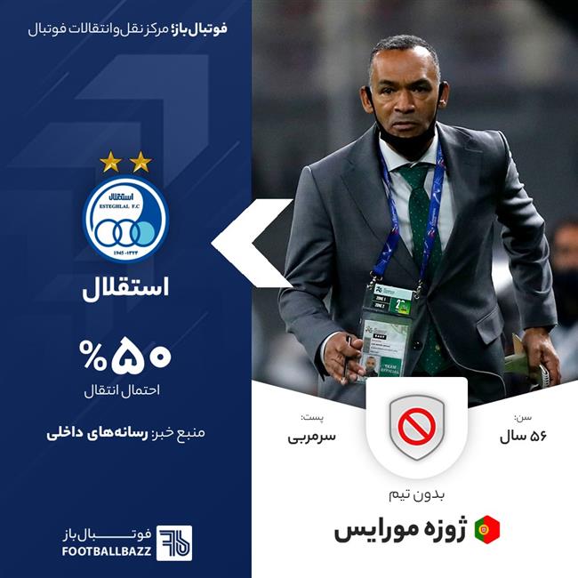 🔁 به نقل از رسانه‌های داخلی: پس از بررسی چند گزینۀ داخلی، مدیران باشگاه استقلال در حال بررسی شرایط ژوزه مورایس برای سرمربیگری این تیم هستند. این مربی پرتغالی، علاوه‌بر دستیاری ژوزه مورینیو در باشگاه‌های اینتر میلان، چلسی و رئال مادرید، سابقۀ سرمربیگری در باشگاه‌های مطرح آسیایی نظیر الهلال نیز را دارد.