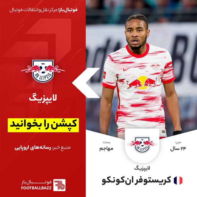🔁 به گزارش برخی رسانه‌های اروپایی، کریستوفر ان‌کونکو که زمزمۀ جدایی‌اش از چندی پیش آغاز شده بود، به‌زودی قرارداد جدیدی با باشگاه لایپزیگ امضا خواهد کرد. این قرارداد دارای بند فسخ ۶۰ میلیون یورویی است. رئال مادرید، بایرن مونیخ و منچستر یونایتد جزو کاندیداهای پرشمار جذب این بازیکن بودند.