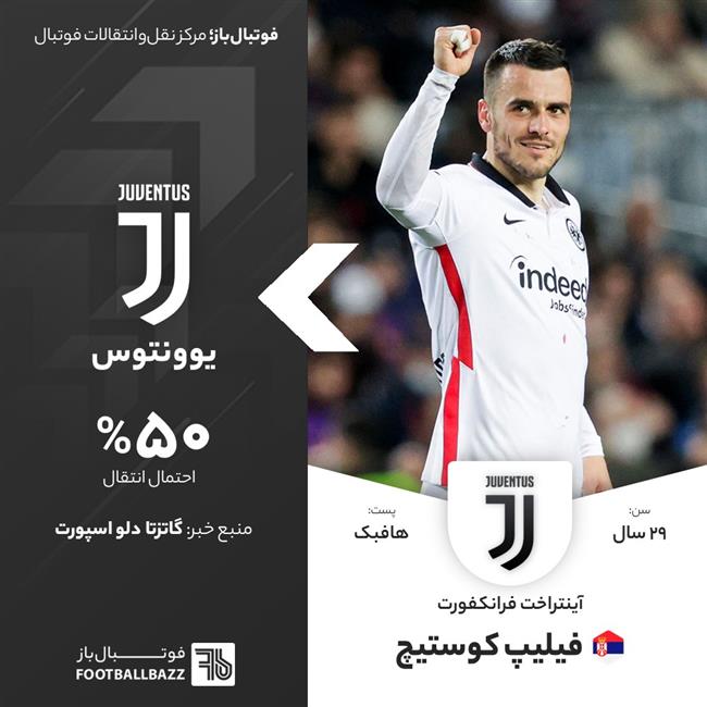 🔁 فیلیپ کوستیچ، هافبک صرب و ملی‌پوش آینتراخت فرانکفورت، پیشنهادهای جذابی را دریافت کرده است که به گزارش گاتزتا دلو اسپورت: یکی از این پیشنهادها، متعلق به یوونتوس است. شنیده می‌شود مدیران بیانکونری با این بازیکن به توافق رسیده‌اند اما آینتراخت فرانکفورت مبلغ ۲۰ میلیون یورو برای صدور رضایت‌نامه می‌خواهد.